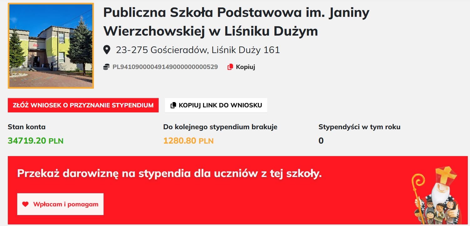 Dziś na subkonto naszej szkoły wpłynęły środki z Fundacja Świętego Mikołaja w wysokości