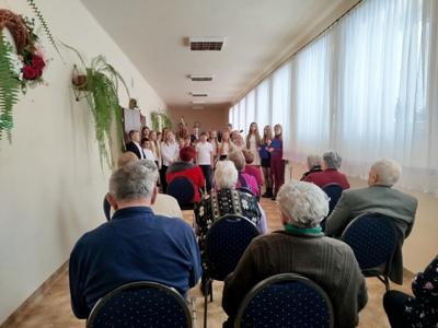 Nasz szkolny chór pod opieką pana Macieja Niemczyckiego odwiedził Dzienny Dom Senior + w Salominie.