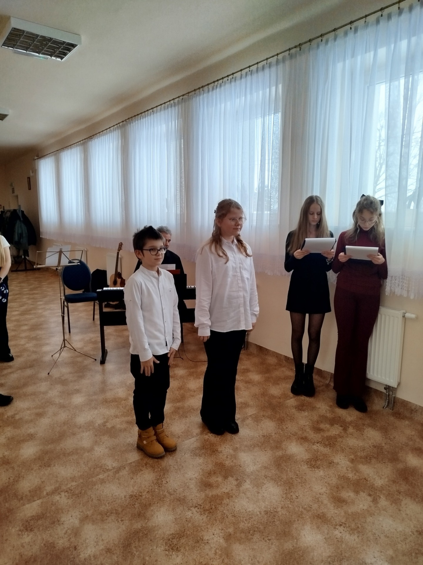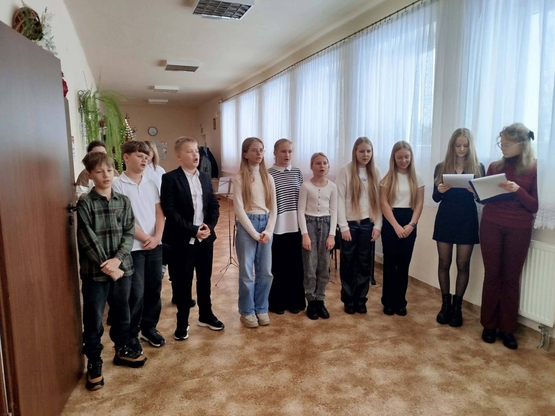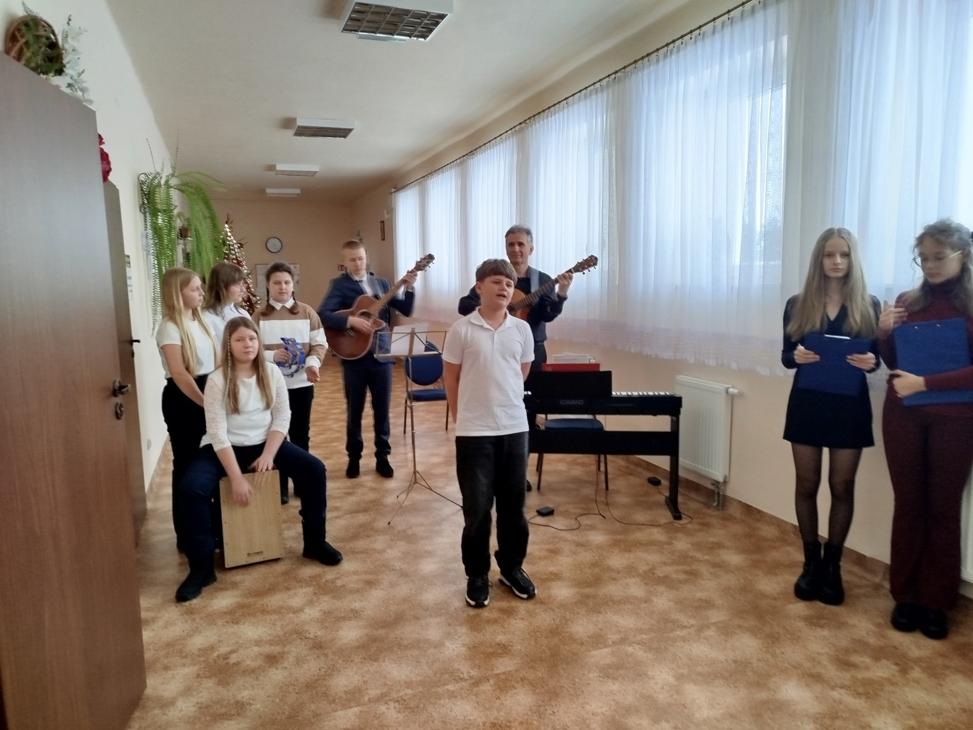 Uczniowie zaprezentowali koncert tradycyjnych kolęd oraz przedstawili ich historię. Wspólne śpiewanie stworzyło wyjątkową, świąteczną atmosferę i było wspaniałym muzycznym przeżyciem dla zgromadzonych. Były również życzenia świąteczno-noworoczne i dużo dobrej energii.