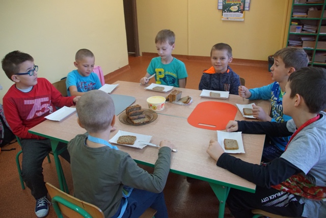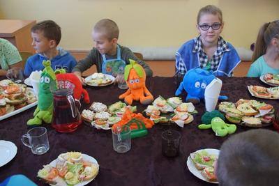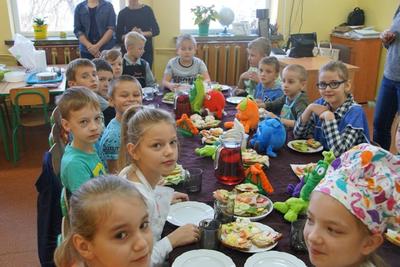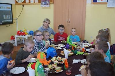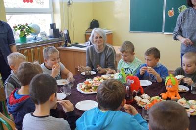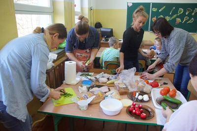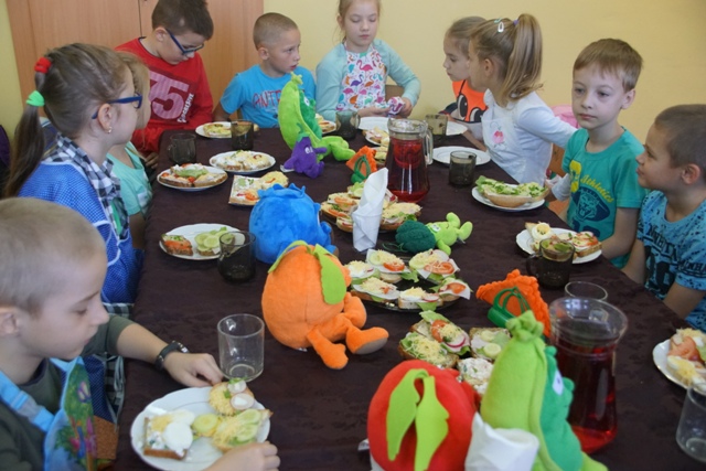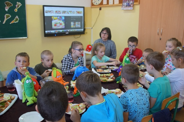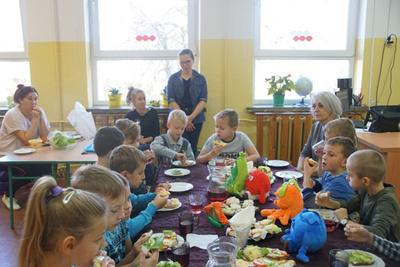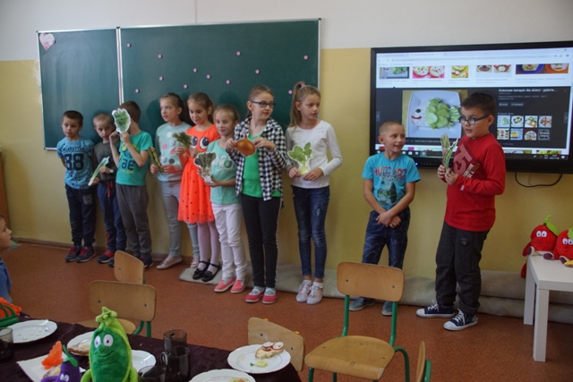 Uczniowie klas: II i III z naszej szkoły również włączyli się w obchody tego dnia. Zanim jednak przystąpili do części praktycznej poznali cenne informacje w oparciu o 12 zasad zdrowego odżywiania, podkreślających ważną rolę prawidłowego żywienia w codziennym życiu. Przygotowali również krótką iscenizację na podstawie wiersza "Na straganie".