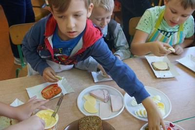 W przygotowaniu zdrowego śniadania swoją pomocą służyli także rodzice.
