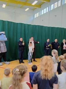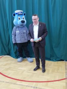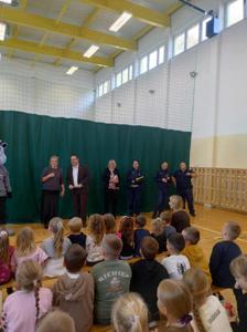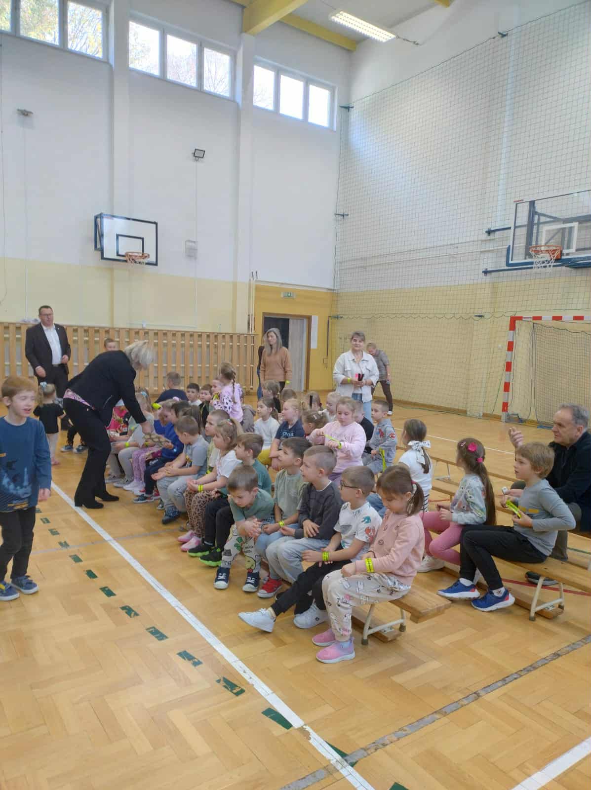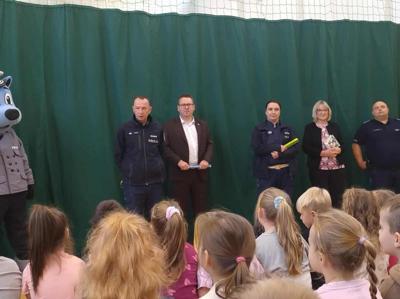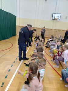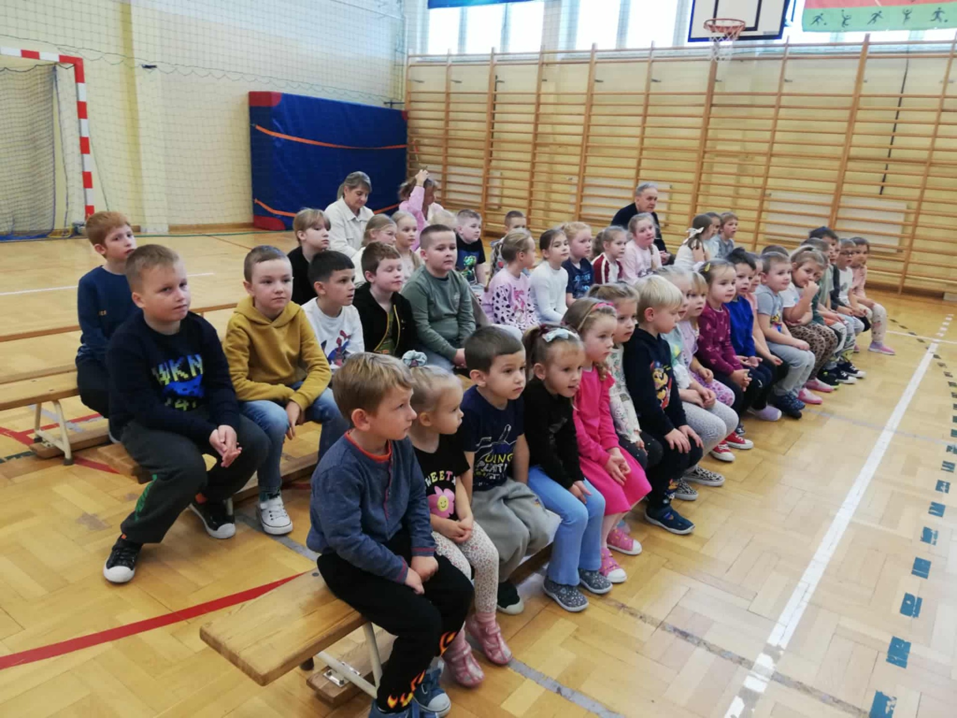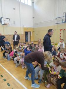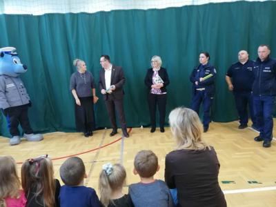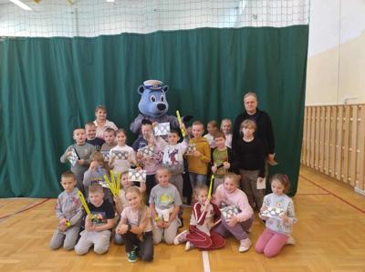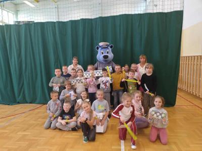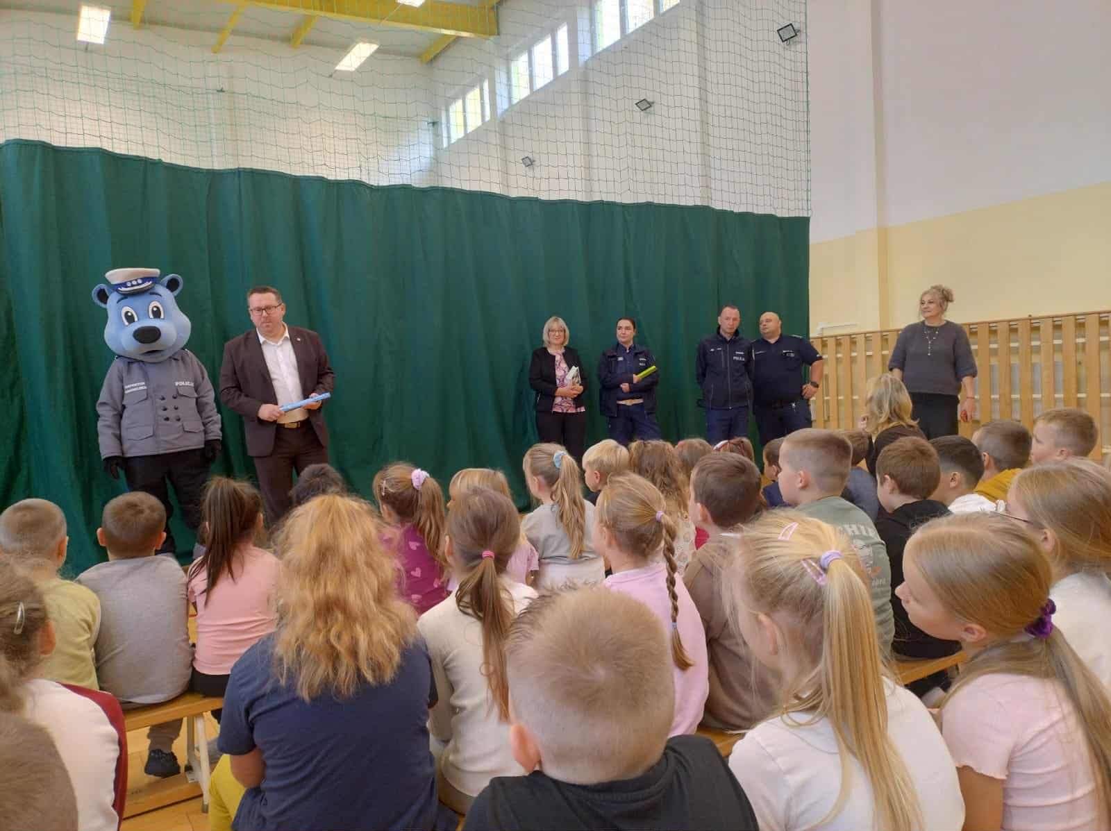 Uczniowie klas I – III oraz dzieci z oddziałów przedszkolnych naszej szkoły uczestniczyli w spotkaniu z policjantami z Komendy Powiatowej Policji w Kraśniku. Zaplanowane spotkanie miało charakter prewencyjny i dotyczyło bezpieczeństwa dzieci na drodze idących do i wracających ze szkoły, prawidłowego przechodzenia przez jezdnię, poruszania się rowerem. Miś Inspektor Kraśniczek zaprezentował dzieciom jak należy przechodzić przez jezdnię na pasach. Podczas spotkania podkreślono również ogromne znaczenie noszenia elementów odblaskowych. Uczniowie aktywnie uczestniczyli w spotkaniu, słuchając i zadając pytania związane z tematem bezpieczeństwa.