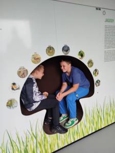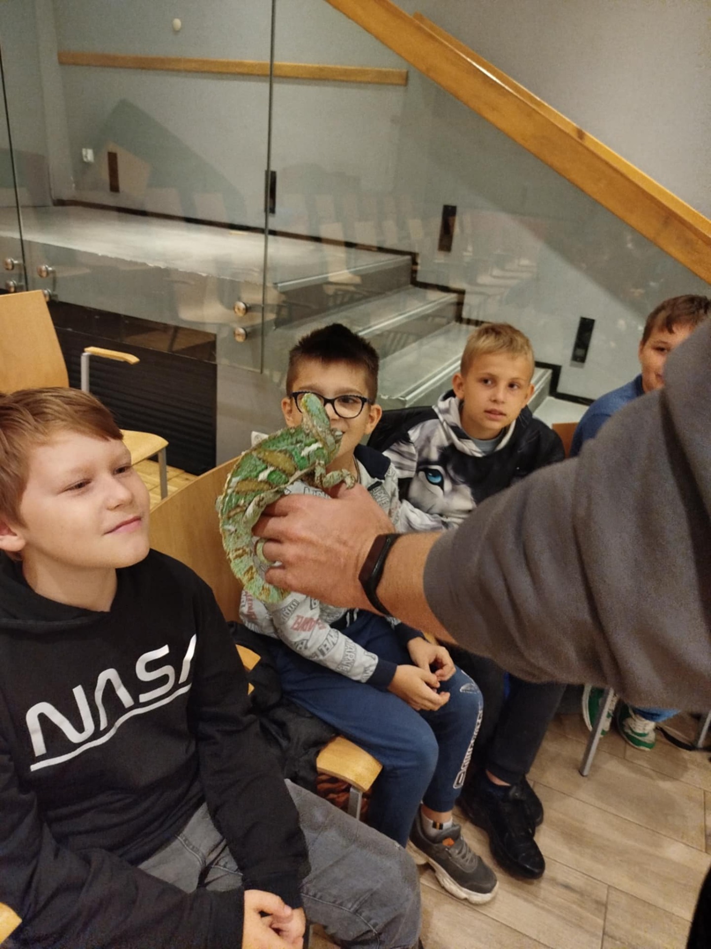 Uczniowie klasy IV i V wraz z wychowawcami odwiedzili ZOOM NATURY w Janowie Lubelskim. Zwiedzanie rozpoczęliśmy od ekspozycji głównej, która obejmuje zakres najciekawszych informacji z przyrody, historii naturalnej, gatunków znajdujących się pod ochroną. Było tam mrówkarium, terrarium, kubik z niezwykłymi roślinami, żywe skamieliny. Pod specjalnie zaprojektowanymi soczewkami i kamerami mogliśmy zajrzeć w niewidziane gołym okiem tajniki natury. Kolejny punktem naszej wycieczki było Laboratorium Recyklingu i Energii. Ekspozycje przekazują informacje na temat różnych rodzajów, źródeł oraz sposobów wykorzystania energii. Przedstawione zagadnienia odwołują się do konkretnych przykładów: budowy elektrowni wodnej czy mechanizmów działania elektrowni wiatrowych. Drugim tematem przewodnim ekspozycji jest recykling. Celem prezentacji jest pokazanie idei, metod i sposobów recyklingu oraz kształtowanie postaw proekologicznych. Aranżacja przestrzeni laboratoryjnej nawiązuje także fizycznie do idei ekologii. Ściana z odpadów aluminiowych, mozaika z odzyskanego szkła, instalacje z przedmiotów z recyklingu. W Laboratorium Runa Leśnego mieliśmy okazję dowiedzieć się o fotosyntezie, grzybach czy też poczuć zapachy przyrody. Kolejnym etapem było Laboratorium Awifauny i Troposfery, które przedstawia bogactwo awifauny janowskiej, oraz zasady aerodynamiki i niezwykłe zjawiska atmosferyczne. Lasy Janowskie są szczególnie cenne ze względu na zamieszkującą je zróżnicowaną awifaunę. Mogliśmy tu poznać gatunki ptaków i ich zwyczaje. Część poświęcona troposferze zawiera prezentacje zjawisk zachodzących w najcieńszej warstwie atmosfery. Po krótkiej przerwie wzięliśmy udział w warsztatach „Egzotyczne zwierzęta”. Była to ciekawa prezentacja na żywo jaszczurek i węży, wraz z pasjonującym wykładem. Ostatnim punktem naszej wycieczki był spacer nad Zalewem Janowskim i zabawa w Ogrodzie Edukacyjno-Muzycznym. Była to ciekawa wycieczka łącząca zabawę z nauką.