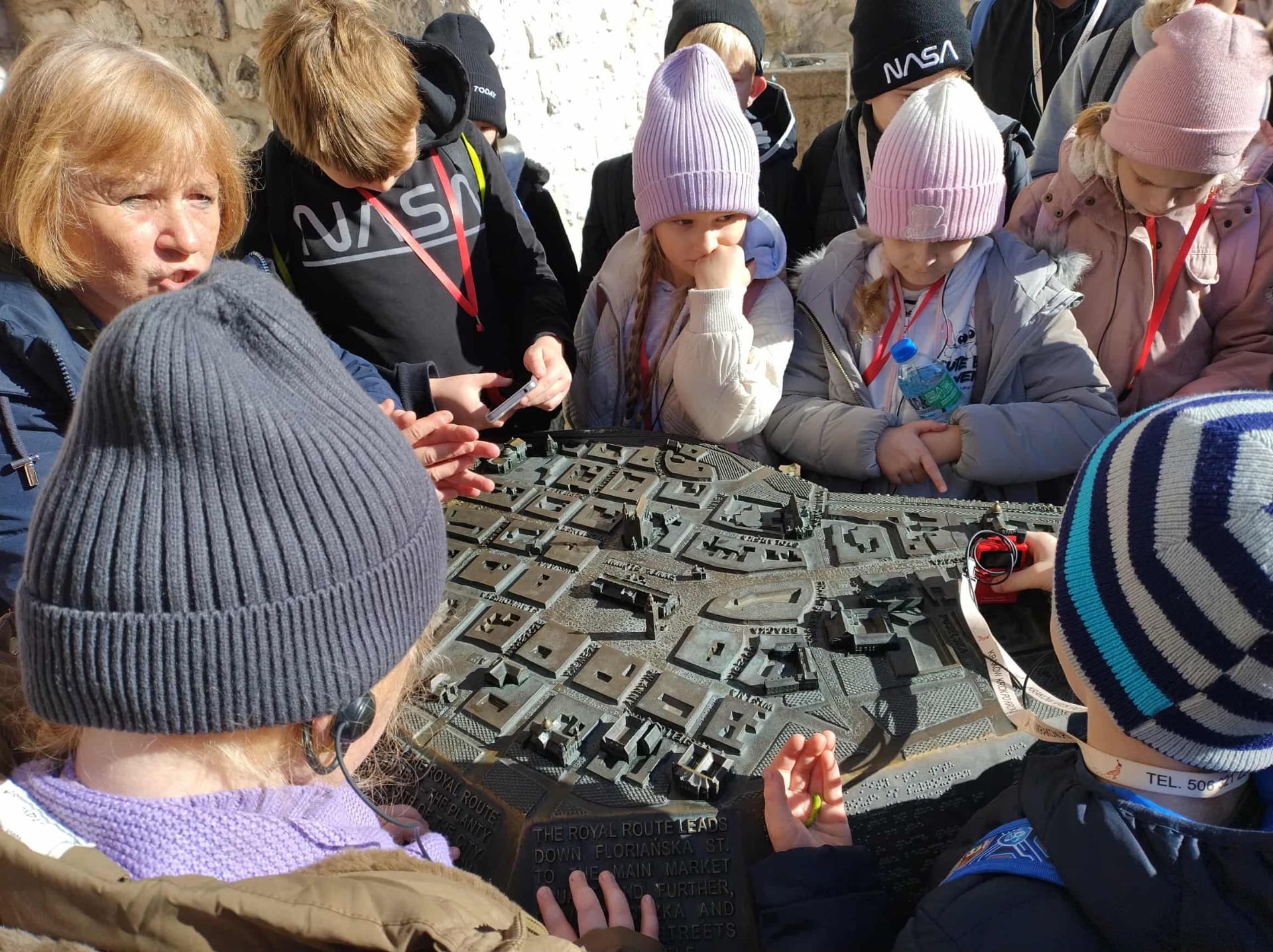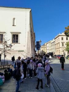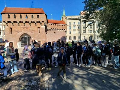 W ramach projektu z języka angielskiego pt."Skuteczna edukacja ''uczniowie kl.2-5 wzięli udział w wycieczce do Krakowa . Pierwszym punktem programu była wizyta w Centrum Nauki i Zmysłów -WOMAI ,gdzie uczniowie mogli doświadczać różne zjawiska z fizyki i geografii.Potem udali się na spacer po Krakowie.Podczas ,którego pani przewodnik opowiadała im w języku angielskim o różnych ciekawostkach i legendach dotyczących zwiedzanych miejsc min.Rynku Głównego,Barbakanu,Sukiennic czy też Wawelu .Uczniowie podziwiali także pomnik Smoka Wawelskiego przy, którym chętnie robili sobie zdjęcia.Na koniec wycieczki dzieci udały się na obiad do amerykańskiej restauracji Well Done BBQ.Uczniowie wrócili bardzo zadowoleni choć trochę i zmęczeni.