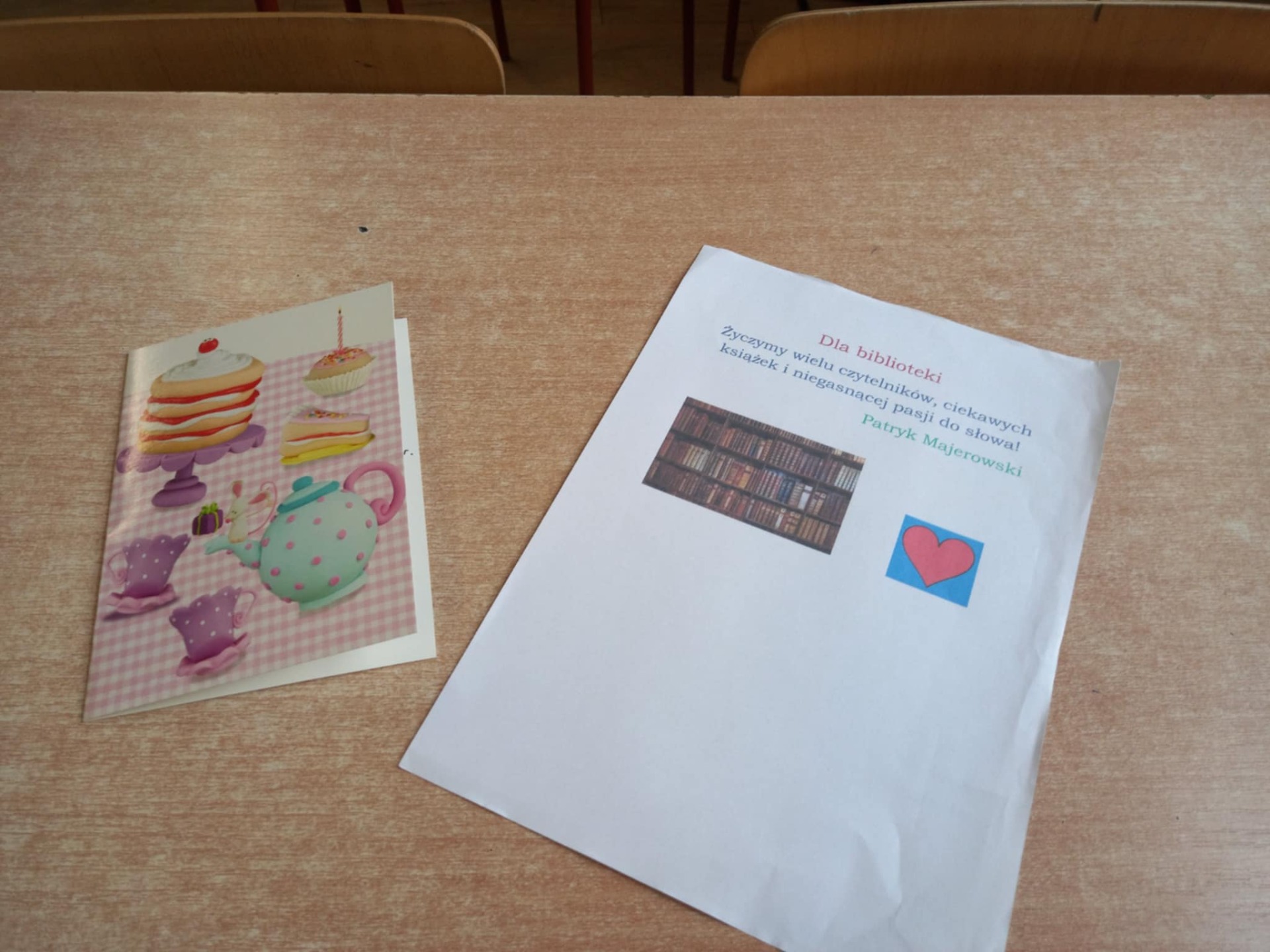 - Życzenia dla biblioteki - zadanie polegało na wykonaniu laurek z życzeniami.