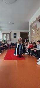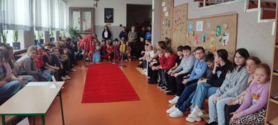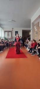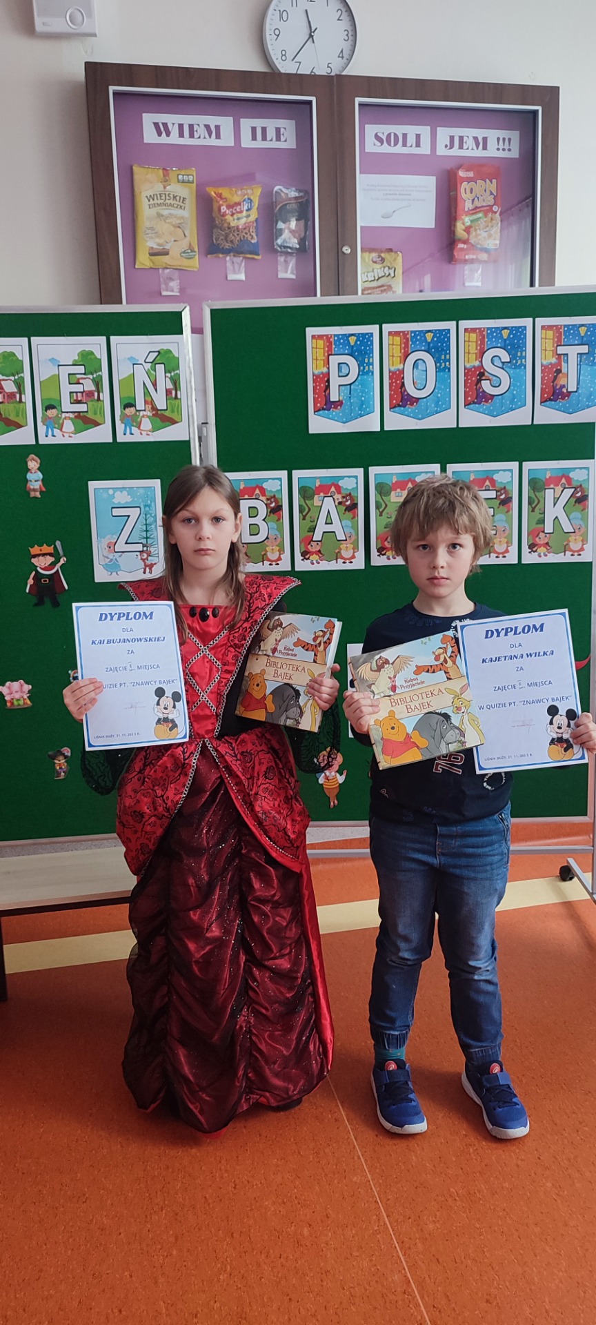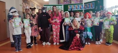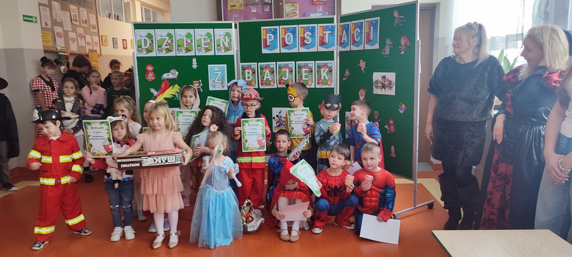 21 listopada 2025 roku w naszej szkole obchodzony był "Dzień Postaci z Bajek". Celem tego przedsięwzięcia było rozwijanie zainteresowań bajką oraz kształtowanie umiejętności wyrażania swobodnej i twórczej ekspresji. W tym dniu uczniowie przebrali się za różnorodnych bajkowych bohaterów. Swoje przepiękne stroje mieli okazję zaprezentowaę podczas "Bajkowego pokazu mody". Następnie odbył się konkurs bajkowy dla kl.I-III pt. "Znawcy bajek". Oczywiście uczniowie poradzili sobie doskonale! Wszystkie postacie z bajek zostały nagrodzone gromkimi brawami, każdy uczestnik otrzymał pamiątkowy dyplom i słodki poczęstunek. Natomiast uczniowie biorący udział w konkursie otrzymali ksiażki i dyplomy. Ten dzień był doskonałą okazją do zabawy i rozwijania zainteresowań czytelniczych.