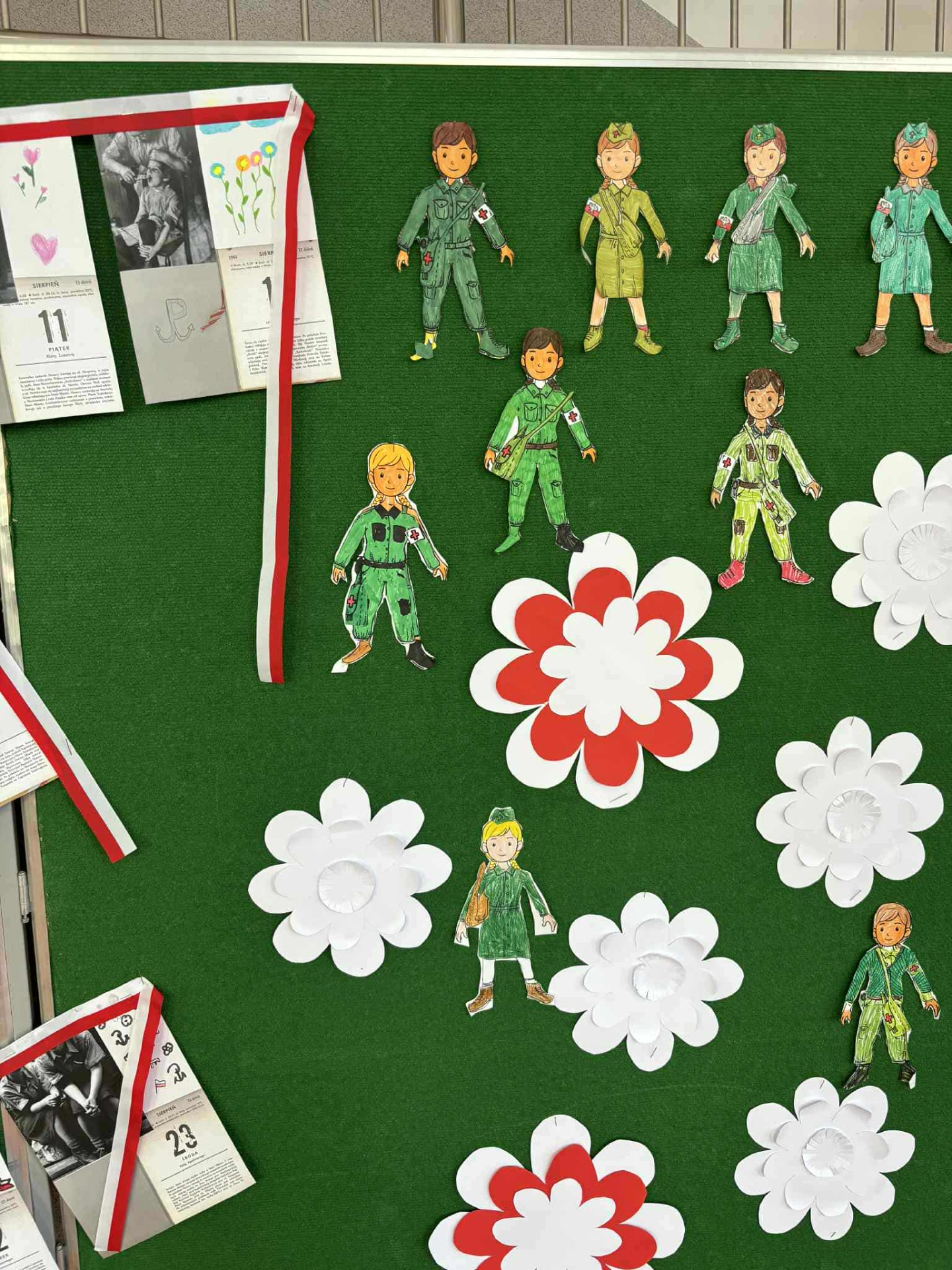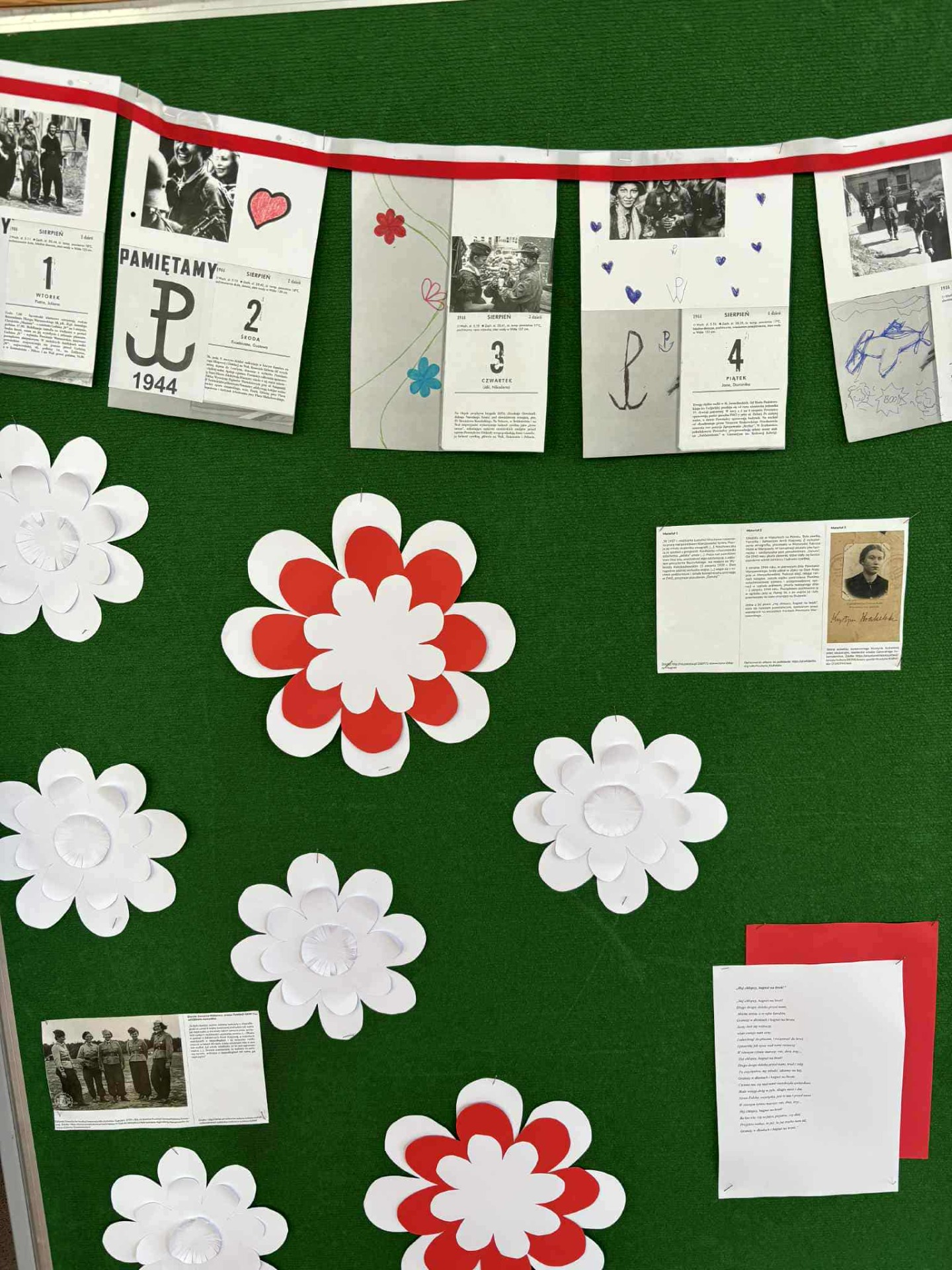W klasach VI- VIII : "Kobiety w powstaniu warszawskim”. Uczniowie stworzyli kartki z kalendarza Powstania Warszawskiego.