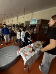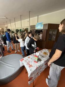 09 października 2025 roku Szkolny Klub Wolontariusza „Promyk Nadziei” zorganizował pierwszą edycję akcji „Pyszne czwartki”. Na uczniów i nauczycieli czekały chrupiące zakręcone ziemniaki, które cieszyły się dużym zainteresowaniem.