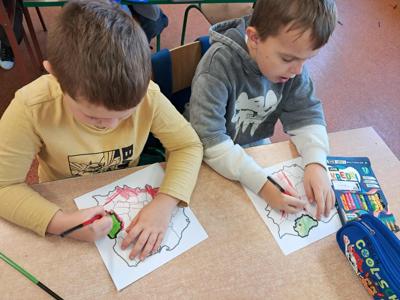 Uczniowie z klasy I wykonali pierwsze wrześniowe zadanie podczas, którego poznawali "Swoją Małą Ojczyznę". Dzięki temu każdy mógł pokazać, co dla niego jest najważniejsze w miejscu, w którym żyje. Nie zabrakło też rozmowy o tym jak można dbać o swoją „małą ojczyznę”.