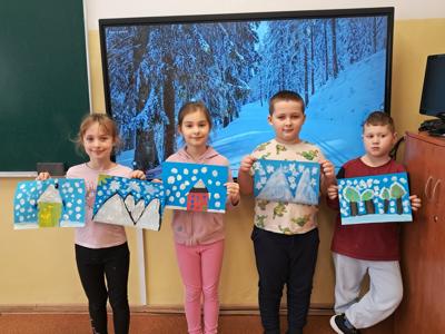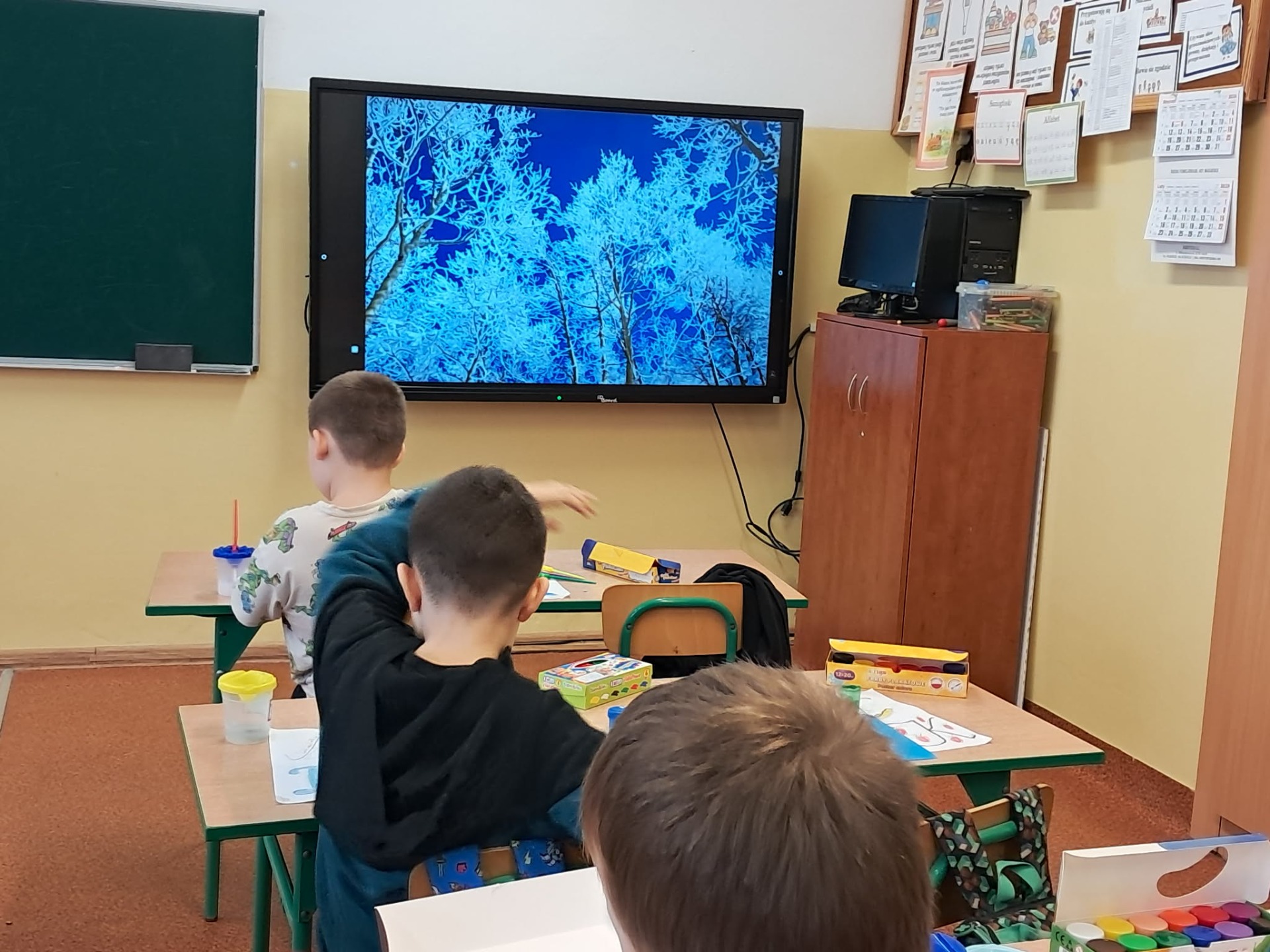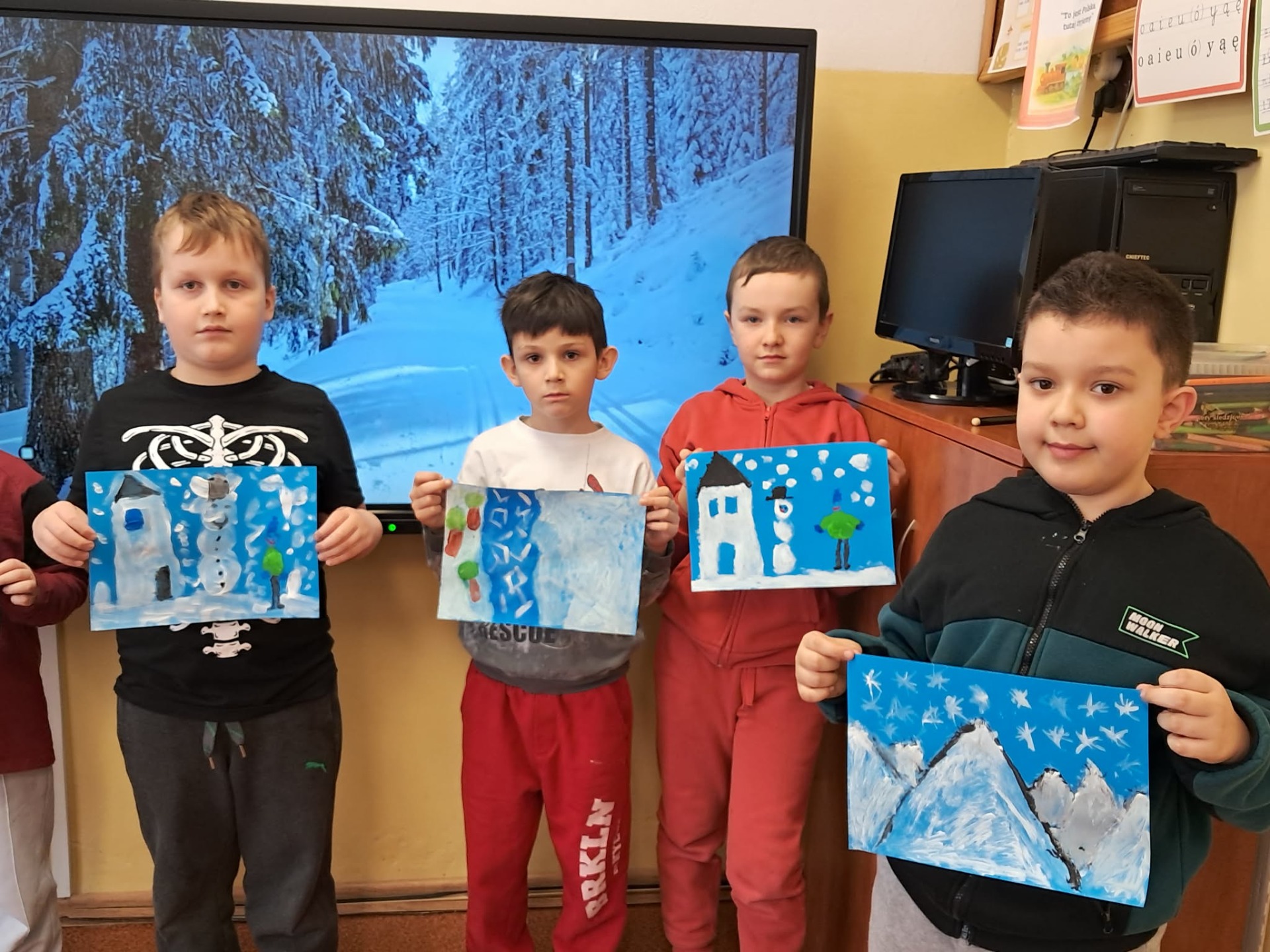 Klasa 1 z Publicznej Szkoły Podstawowej im. Janiny Wierzchowskiej w Liśniku Dużym wykonała zadanie styczniowe w ramach projektu "To jest Polska, tutaj żyjemy". Tematem były "Zimowe krajobrazy Polski". W ramach tego zadania uczniowie obejrzeli prezentację przedstawiającą różne, zimowe krajobrazy Polski i wykonali prace plastyczne inspirowane tą tematyką. Malowanie farbami plakatowymi sprawiło im wiele przyjemności.